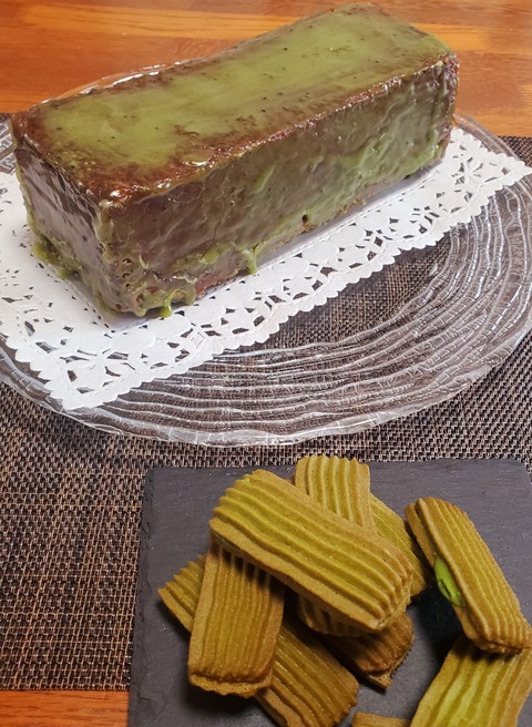 5月の新ケーキレッスンは抹茶づくしです?ケーク抹茶と茶の香?しっとりとやわらかめのお抹茶のパウンドケーキアプリコットのピュレと抹茶のグラスで仕···
